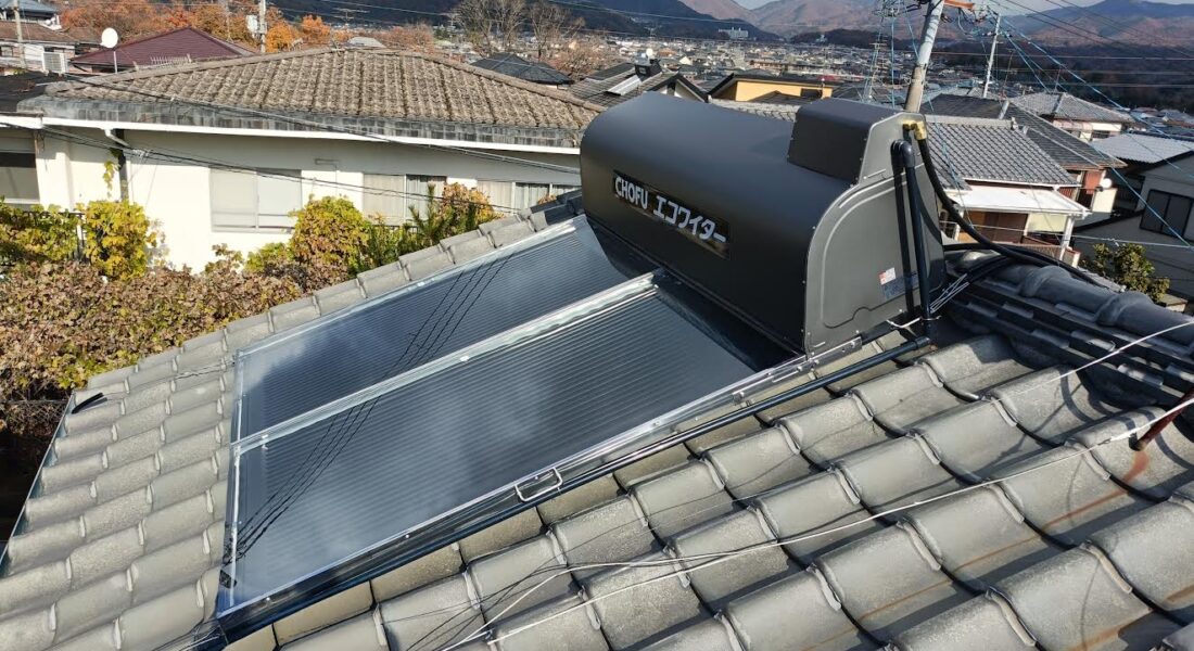 本日は長府製作所エコワイターのワイドタイプ(集熱面積3.5㎡)を設置させて頂きました。朝には雨も止んで無事に工事完了です♪ ありがとうございました。